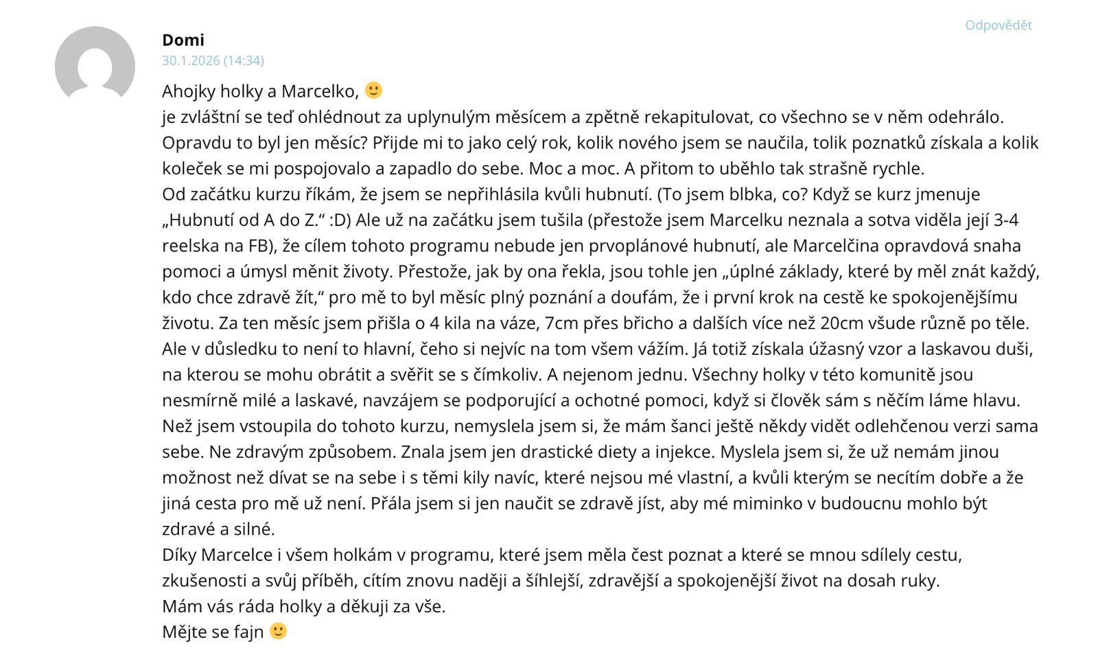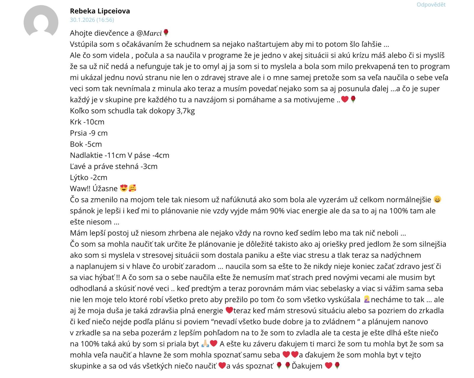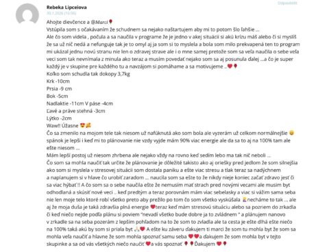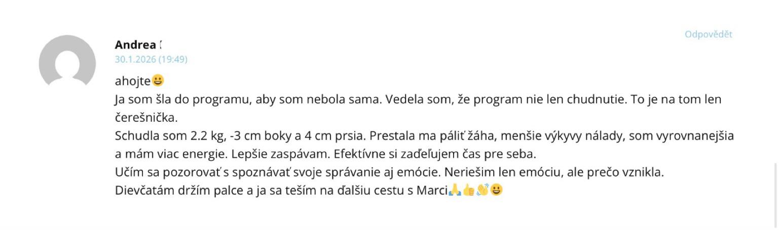 Investice do sebe, která má smysl. Zvládneš to? ANO! Díky letité praxi vím, jak dosáhnout úspěchu. Vím kdy a co potřebuješ. Pracujeme postupně a tak, aby to zapadlo do tvého každodenního života. Pokud si uvědomuješ, jak moc to pro tebe je důležité, jsem si jista, že si po měsíci řekneš: STÁLO TO ZA TO! Jedno vím jistě: když se rozhodneš, že ty jsi důležitá, změní se mnohem víc než tvoje váha. Tvůj život dostane nový směr. Sebevědomí. Zdraví. Spokojenost. A to je hodnota, která přesahuje jakoukoliv cenu. Pokud cítíš, že právě teď je ten čas, věřím, že tento program ti dá víc, než očekáváš.